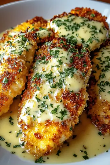 Crispy Parmesan Chicken with a Rich Garlic Sauce Delight