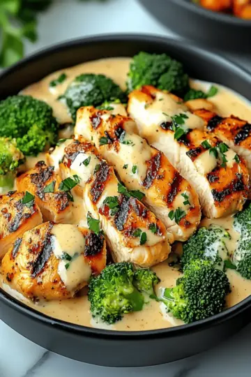 Grilled Chicken & Broccoli Bowls with Creamy Garlic Sauce Bliss