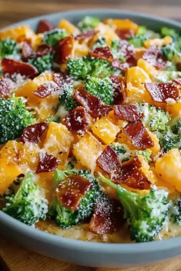 Irresistibly Crunchy Broccoli Bacon Salad with Raisins and Cheddar Cheese