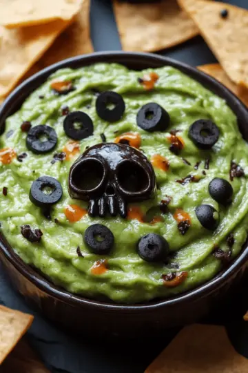 Swamp Guac with Creepy Crawler Chips for Spooky Snack Fun